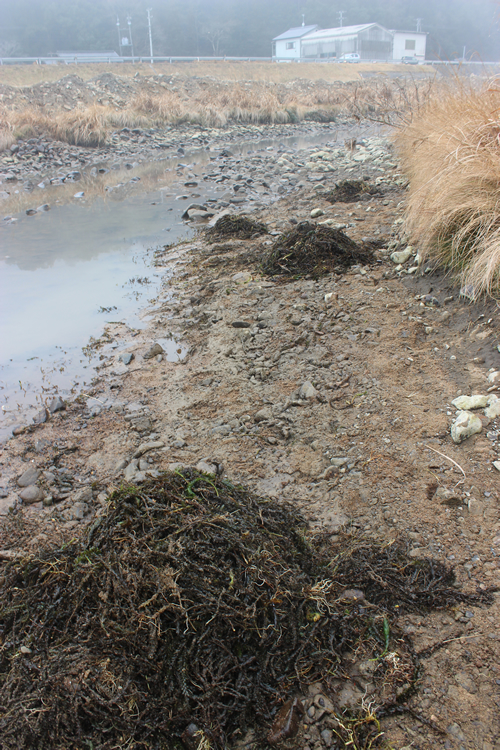 左の写真は藻の駆除をしているところで、これを最後の報告にしようと思う。この藻は聞いたことがあるかもしれないが「オオカナダモ」という藻で歴とした外来水棲植物だ。