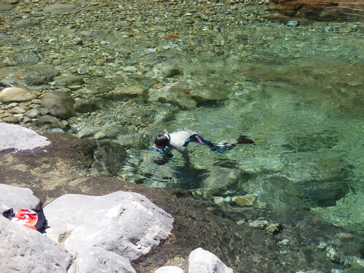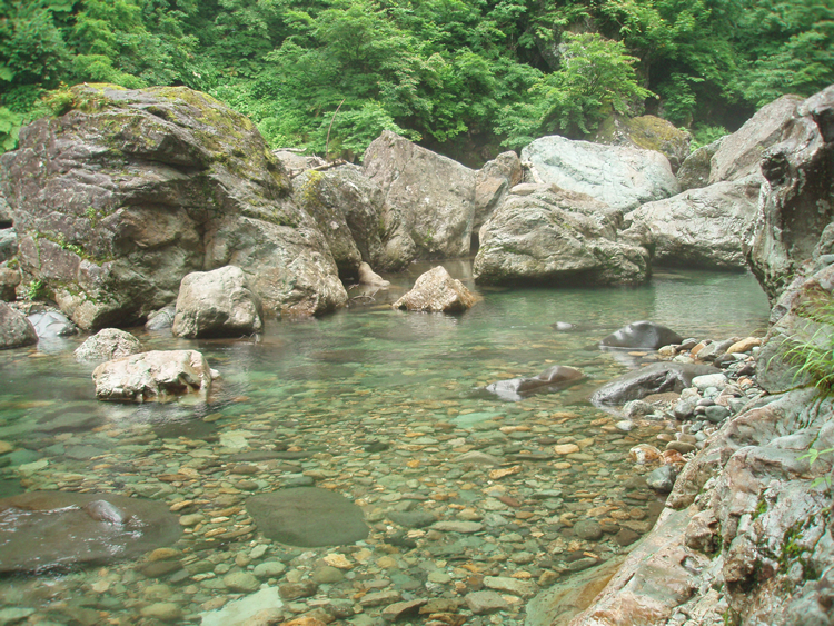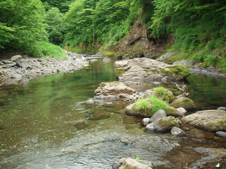 私の好みのタイプの川は「女型」というのか、とてつもない「男型」の激流に比べて、どちらかというと流れが緩やかで、潜るに適した透明度と水質が保たれている川です。明確な基準というものはありませんが、後に紹介する写真のような景色を見るとモチベーションが上がります。