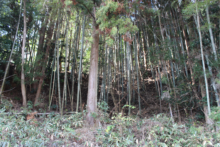 それは全く予期できなかったことで、去年はその被害を被ってしまったため今年は是非とも対策を講じるべく動くことにした。さっそくだが、右の写真は集落の山の中で竹が多く生えているあたりを撮ったもの。